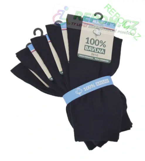 Dámské i pánské čistě bavlněné ponožky, jednobarevné, příjemný vaflový lem, skvělá roztažnost i délka, 100% česaná bavlna, neškrtí a nesjíždí, 5 ponožek v balíčku