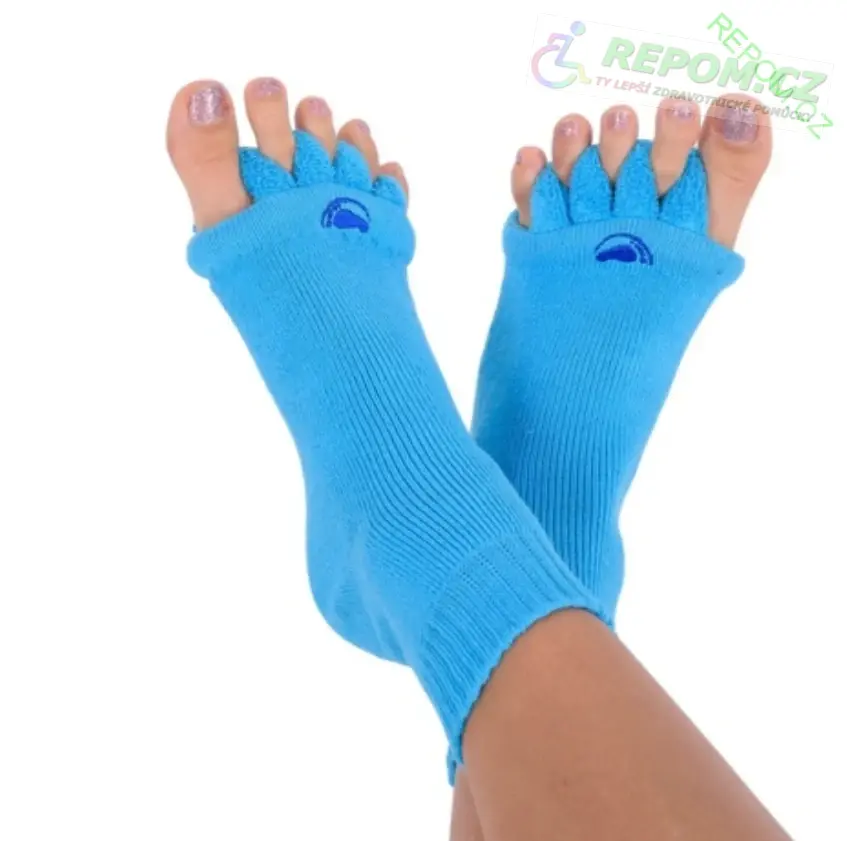 Originální Adjustační ponožky® jsou zdravotní a terapeutická pomůcka, která pomáhá při vbočeném palci, kladívkových prstech, otocích, křečích či bolestech nohou. Díky speciálním meziprstním oddělovačům jemně rovnají a uvolňují prsty, čímž podporují správné postavení chodidla, krevní oběh a celkovou regeneraci nohou.