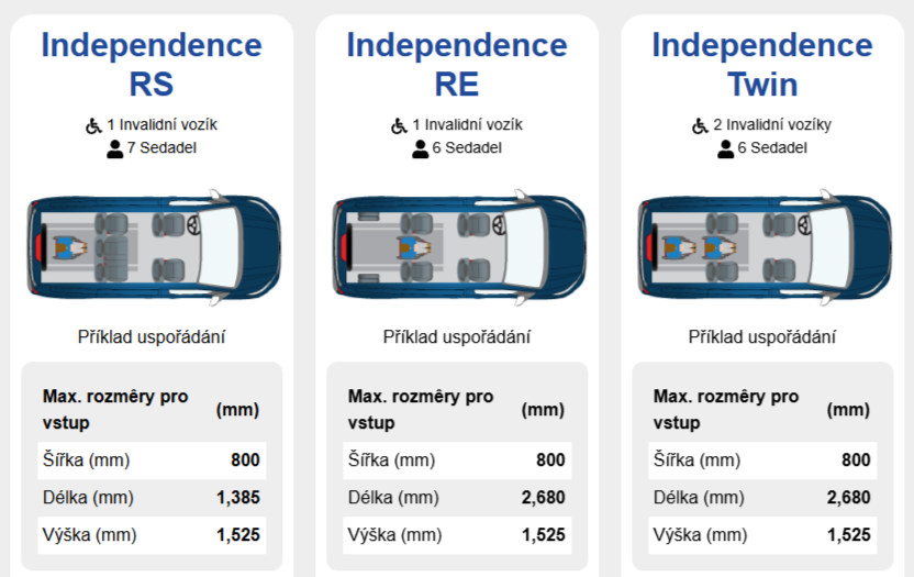 Independence Twin se dvěma místy pro invalidní vozík a šesti sedadly.