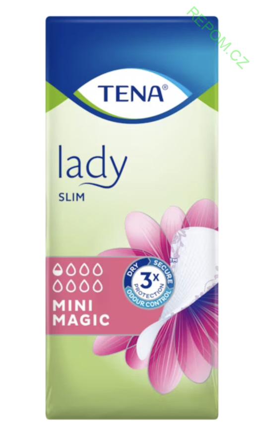 TENA Lady Slim Mini Magic je ta nejmenší vložka, ale poskytuje překvapivě spolehlivou ochranu při jakémkoliv malém úniku moči. Je malá jako slipová vložka, ale s mnohem větší schopností absorpce. Tato slipová vložka, určená pro použití při úniku moči, jako zázrakem uzamkne tekutinu uvnitř rychle a hluboko díky technologii microPROTEX™. Je tak tenká, že si její přítomnosti téměř nevšimnete. Používejte ji pro jistotu každý den, aby vám malé úniky moči nikdy nenarušily pocit sebejistoty.