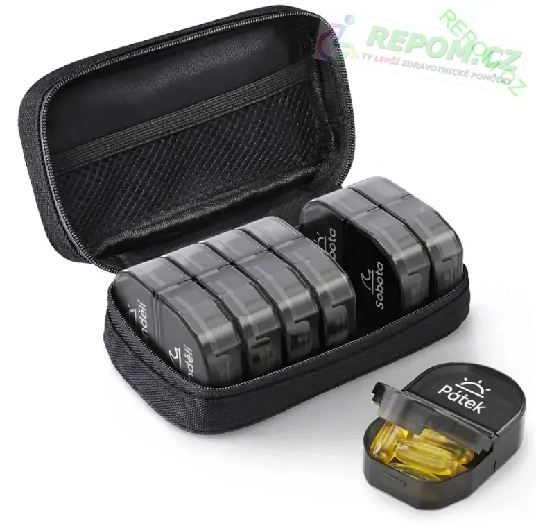 Odnímatelné denní přihrádky: Přihrádky na jednotlivé dny lze používat i samostatně, což je praktické na cestách nebo při krátkodobých výletech.