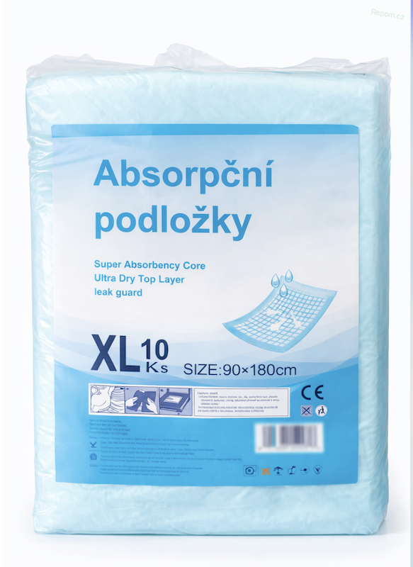Jednorázové savé absorpční podložky XL, 90x180 cm se záložkami, 10ks