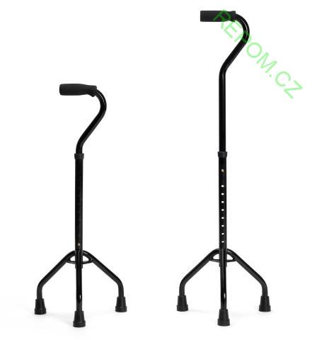 Vycházková hůl s základnou o třech nohách a otočným madlem