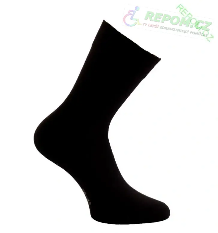 Dámské i pánské hladké elastické bavlněné jednobarevné zdravotní ponožky bez gumiček s IONTYSTŘÍBRA v černé barvě, ploché sešití špice, zesílené zátěžové části